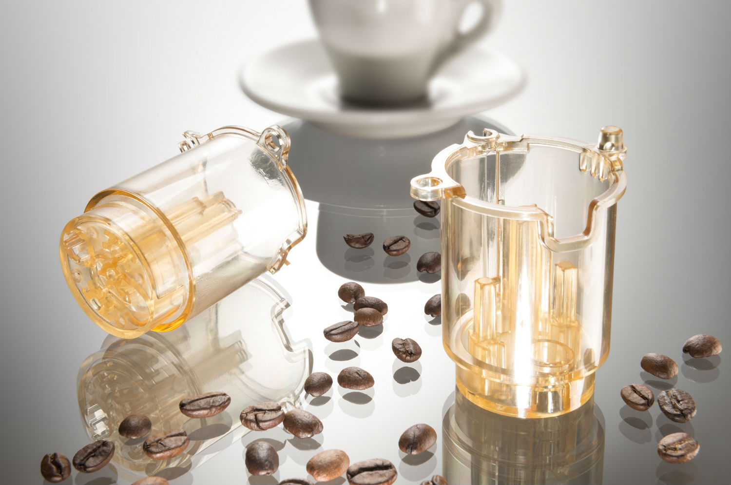 Компания De'Longhi искала именно такой материал для поршня, который мог бы на протяжении всего срока службы машины выдерживать высокое давление и горячий пар, неизбежные при приготовлении кофе. Выбор был сделан в пользу Ultrason®, так как компоненты, изготовленные из Ultrason® E, могут многократно подвергаться воздействию горячего пара, сохраняя при этом прозрачность и высокую механическую прочность. Испытания, проведенные в соответствии с различными стандартами ISO, показали, что Ultrason® E 3010 MR сохраняет превосходные механические свойства даже после 2 000 циклов паровой стерилизации при температуре 134° C, демонстрируя при этом высокое сопротивление растрескиванию под нагрузкой. Все эти характеристики, а также применение программы компьютерного моделирования Ultrasim®, созданной концерном BASF, позволили разработать идеальную пресс-форму для деталей.