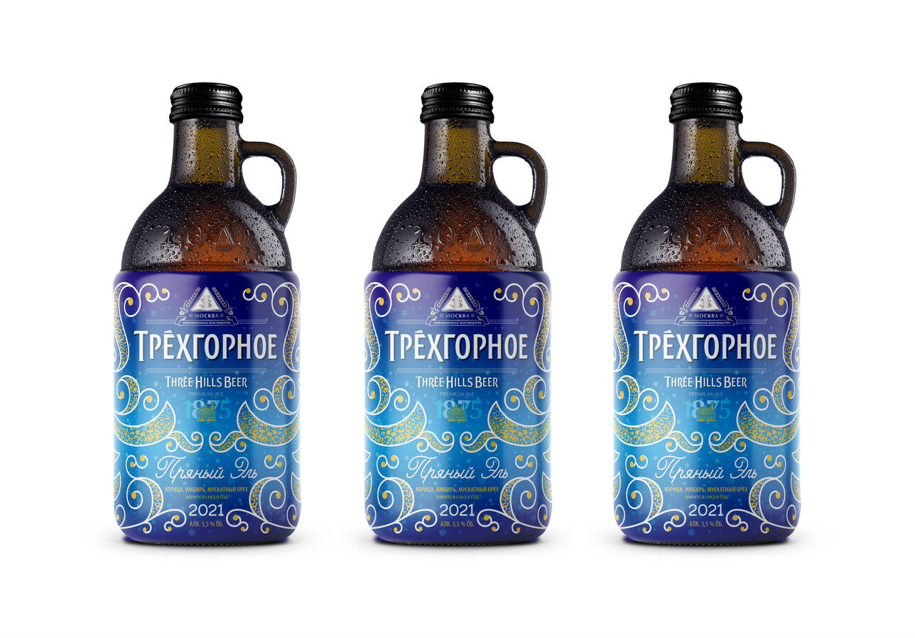 Марка «Трехгорное» представила традиционный новогодний выпуск «Трехгорное Пряный Эль» в обновленном праздничном дизайне и бутылке объемом 1 литр.