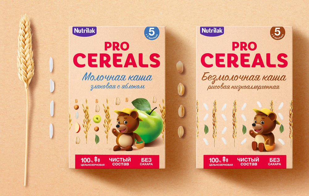 Дизайнеры адаптировали лицевую сторону, передав при этом преемственность бренду Nutrilak Premium, сохранили логотип бренда-гаранта в верхней части упаковки и выделили категорию ProCereals.