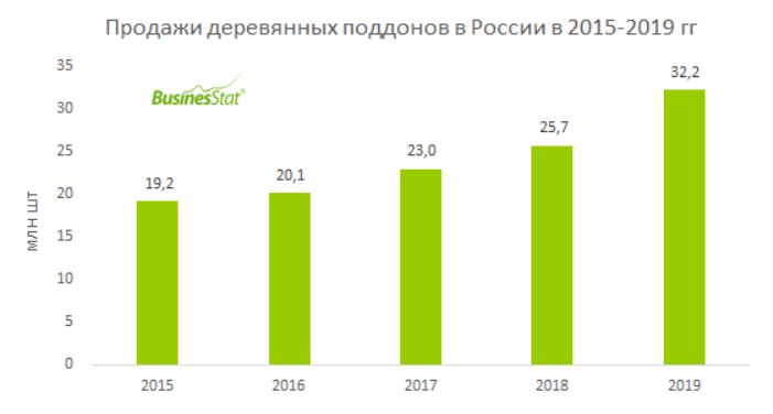 По данным , подготовленного BusinesStat в 2020 г, в 2015-2019 гг их продажи в стране ежегодно росли. В целом за период продажи увеличились на 68,1%: с 19,2 до 32,2 млн шт. Основным фактором роста спроса на поддоны является автоматизация погрузо-разгрузочных работ как на этапе транспортировки, так и на складах. Кроме того, использование поддонов позволяет сократить производственные и складские площади. Помимо этого, развитию рынка поддонов способствует и недостаточно хорошее качество дорог: чтобы довезти товар в целости, необходима жесткая фиксация, которую и обеспечивают поддоны.