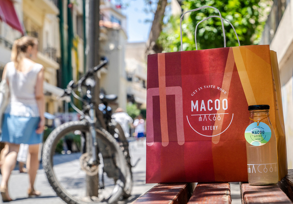 В греческой студии Deep Blue Design разработана айдентика и дизайн упаковки для ресторана домашней кухни MACOO Eatery (Ираклион).