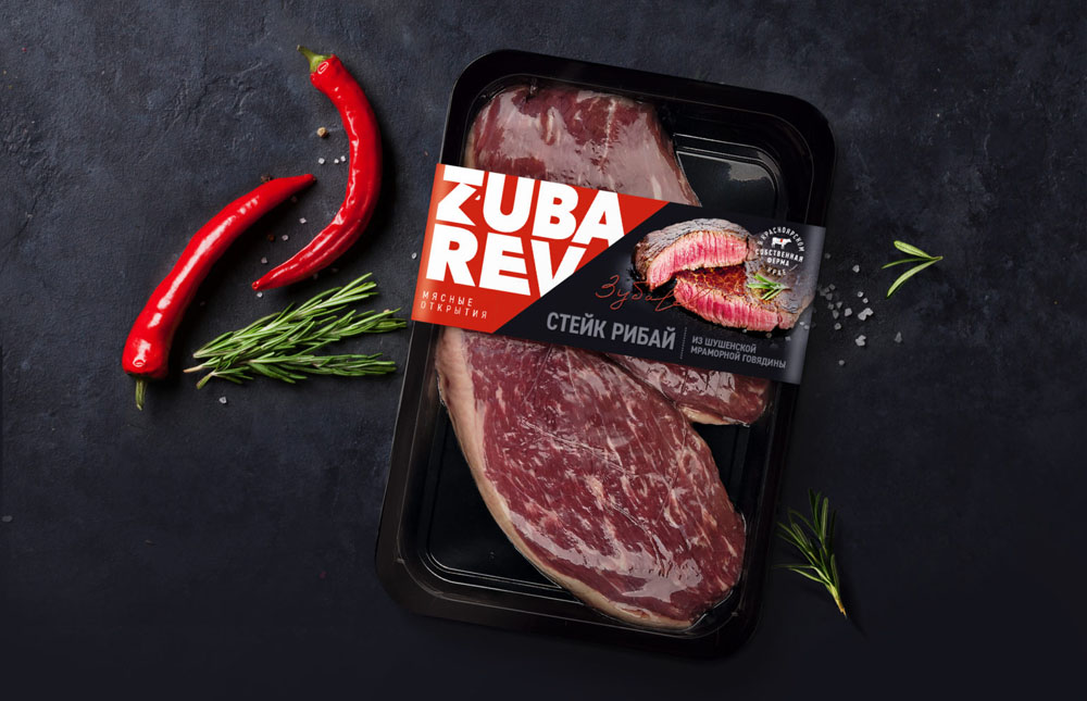 Агентство Getbrand разработало экспресс-дизайн упаковки для мясных продуктов из мраморной говядины Zubarev.