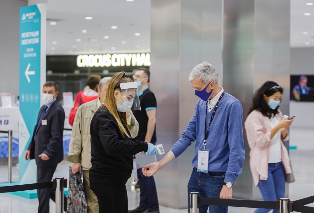 Процедуры прибытия, доступа и регистрации экспонентов, подрядчиков и посетителей, будут осуществляться бесконтактно. Моющие средства для рук будут доступны в штатных туалетных комнатах, а средства дополнительной ручной гигиены будут предоставлены в местах проведения деловых мероприятий, на входах в зал и во всех зонах интенсивного трафика. Уборка выставочной территории будет осуществляться ежедневно, а дезинфекция помещений — несколько раз в день. Лицам, находящимся на территории выставки без СИЗ и не соблюдающим правила гигиены, будет отказано в доступе на территорию выставки. Все посетители будут подвергаться скринингу температуры тела на входах в павильоны. Люди с повышенной температурой тела и симптомами заболевания будут изолированы для оказания экстренной медицинской помощи.