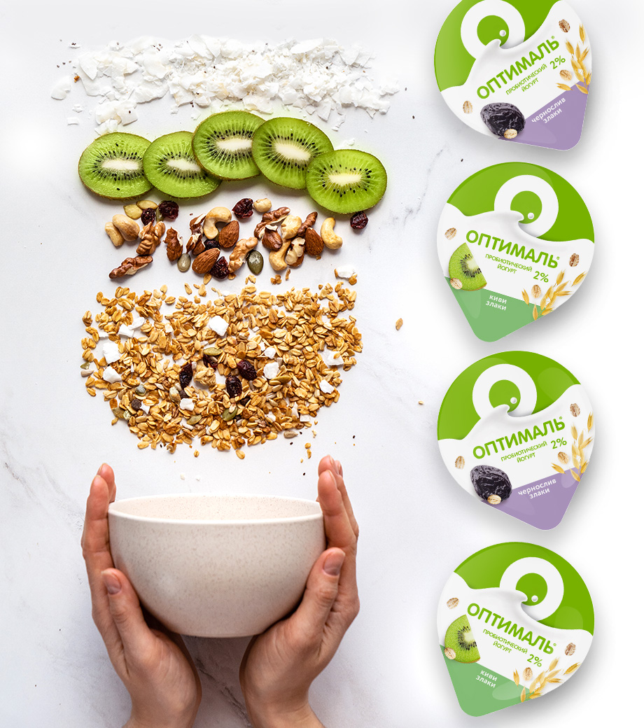 Агентство Kian представляет новый визуальный образ для бренда пробиотических йогуртов "Оптималь" от компании "Савушкин продукт".