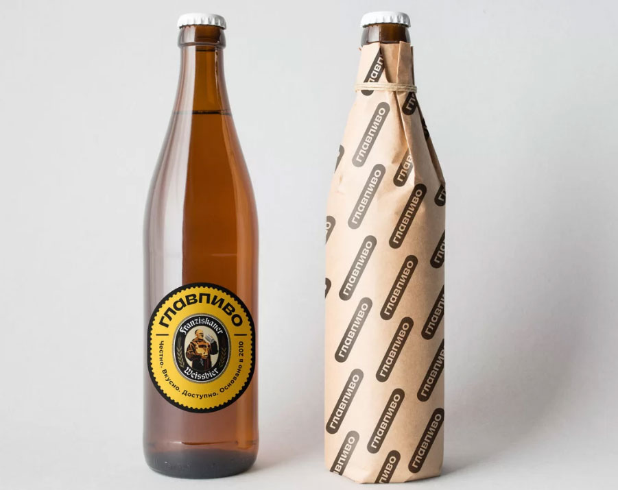 В первую очередь изменились характер логотипа и правила его применения. Шрифт стал основным инструментом взаимодействия с аудиторией, новое начертание получило простые и современные формы. Знак с изображением хозяйки заведений ушел на второй план, так как слово «Главпиво» узнаваемо само по себе и лучше считывается без лишних элементов.