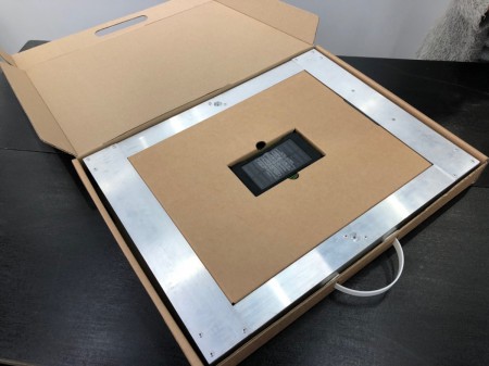 Упаковка изготовлена из гофрокартона и состоит из двух частей — коробка и вкладыш-ложемент. Конструкция коробки — «самолет» с пластиковой ручкой.
