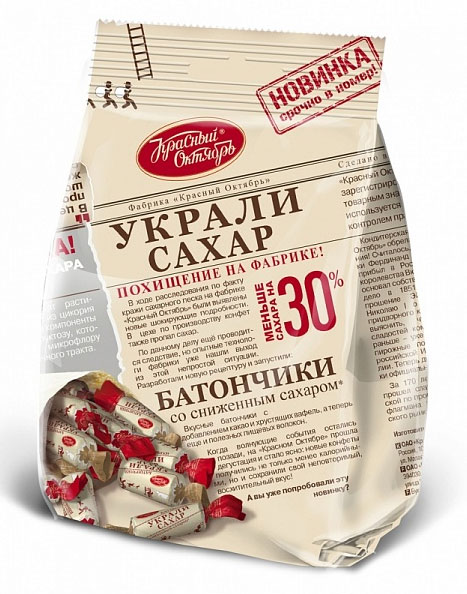 Для фабрики "Красный Октябрь", входящей в Холдинг "Объединенные кондитеры", прошедший год был отмечен выходом на рынок инновационного молочного шоколада "Украли сахар". Новинка сразу привлекла внимание покупателей, а ее выпуск был особо отмечен в международном рыночном исследовании "Euromonitor International". В этом году производитель планирует расширить ассортимент пористого шоколада без сахара.
