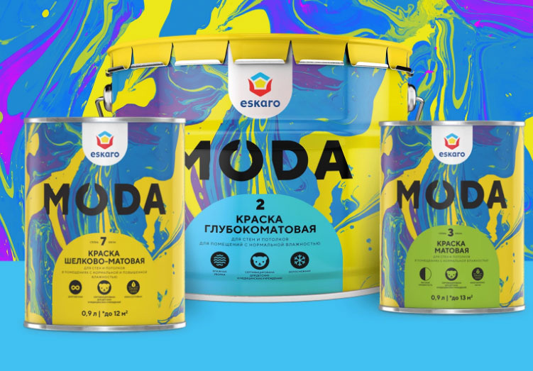 Производитель лакокрасочных материалов Eskaro разработал новую премиальную товарную линейку красок MODA. Бренд и дизайн упаковки создавали специалисты агентства Coruna Branding.