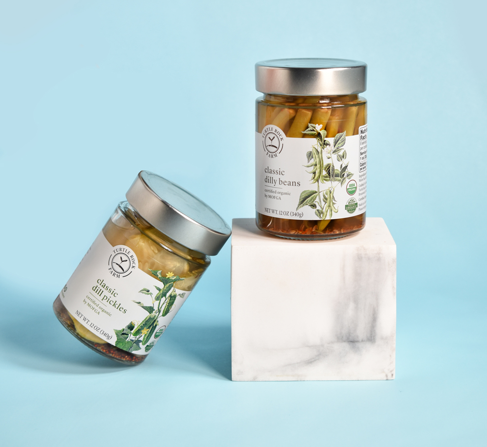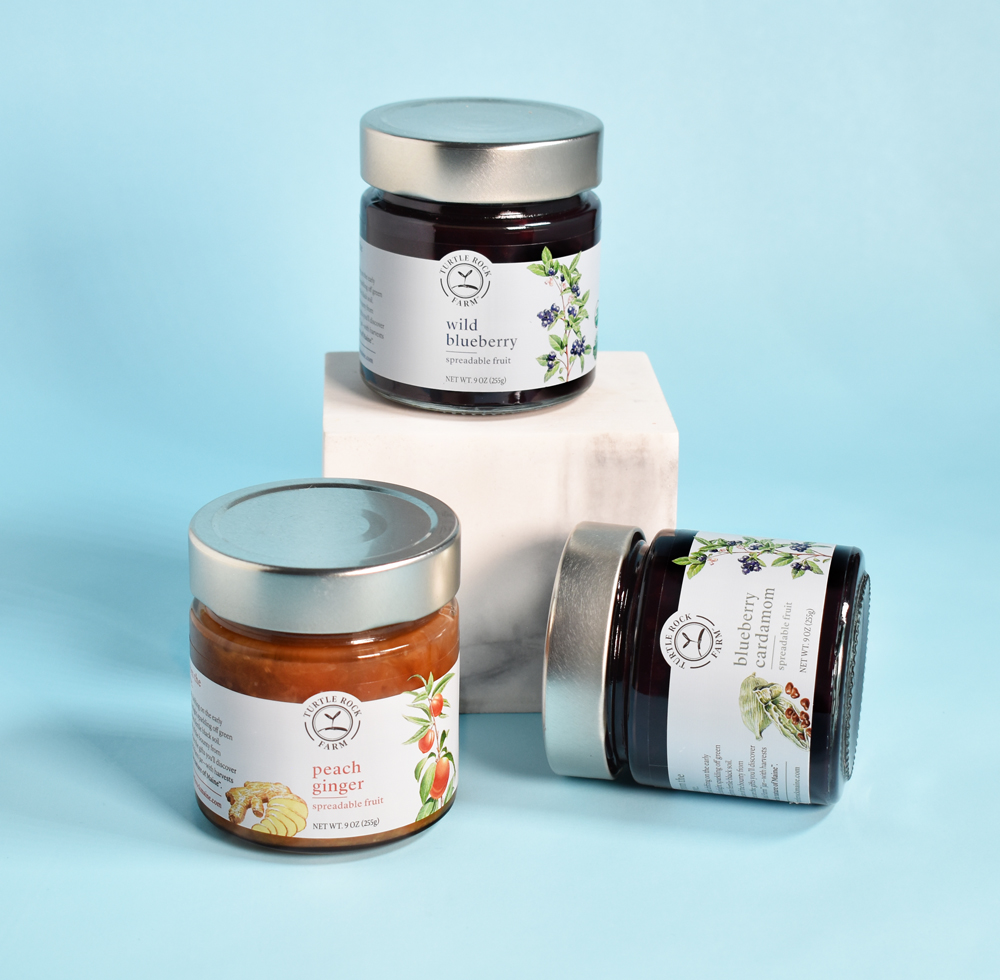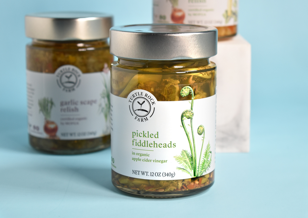 Обширную линейку продукции Turtle Rock Farm теперь объединяет единый визуальный образ, в центре которого – изящные ботанические иллюстрации. Белая этикетка создает отличный фон для иллюстрации и дает ощущение чистоты, свежести. Верхняя часть этикетки выполнена из прозрачного материала. Благодаря этому создается ощущение, что растения из иллюстраций «прорастают» на саму банку, что создает ощущение движения, изобилия.