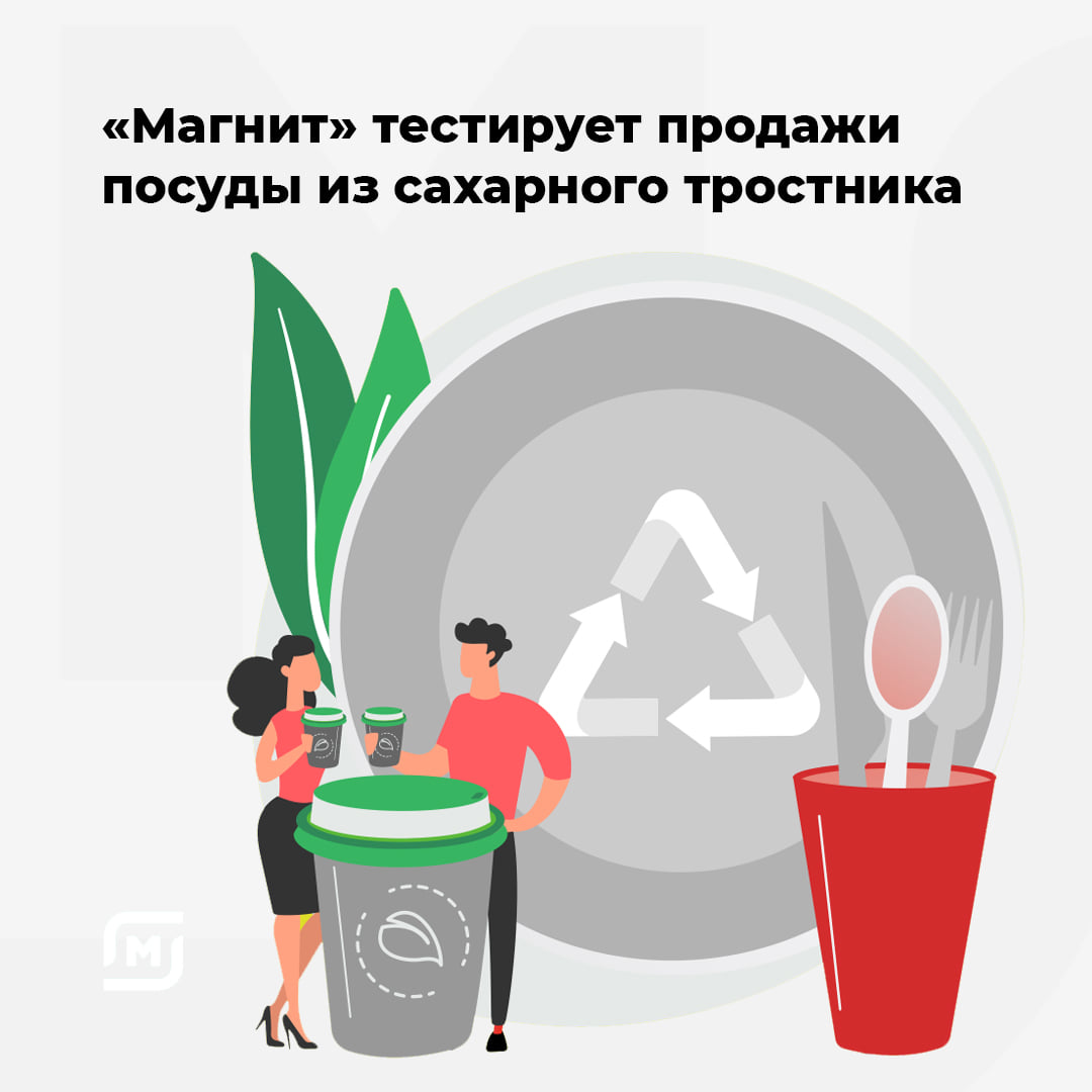 Розничная сеть «Магнит» начала продажи биоразлагаемой посуды из сахарного тростника. 13 видов посуды представлено в супермаркетах «Магнит Семейный» и суперсторах «Магнит Экстра».