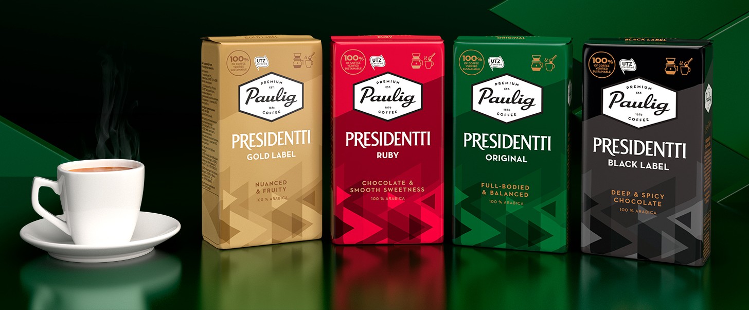 Работа с поставщиками сырья этим не ограничивается. При поддержке партнёров Paulig сертифицировала по стандартам UTZ свою именитую линейку Presidentti, состоящую из четырёх блендов: Original, Gold Label, Black Label и Ruby. Сертификат UTZ подтверждает, что кофейные бленды Paulig Presidentti произведены с учётом всех требований по защите окружающей среды, а также с учетом норм социальной ответственности и с заботой о фермерах, выращивающих и предварительно обрабатывающих зёрна кофе.