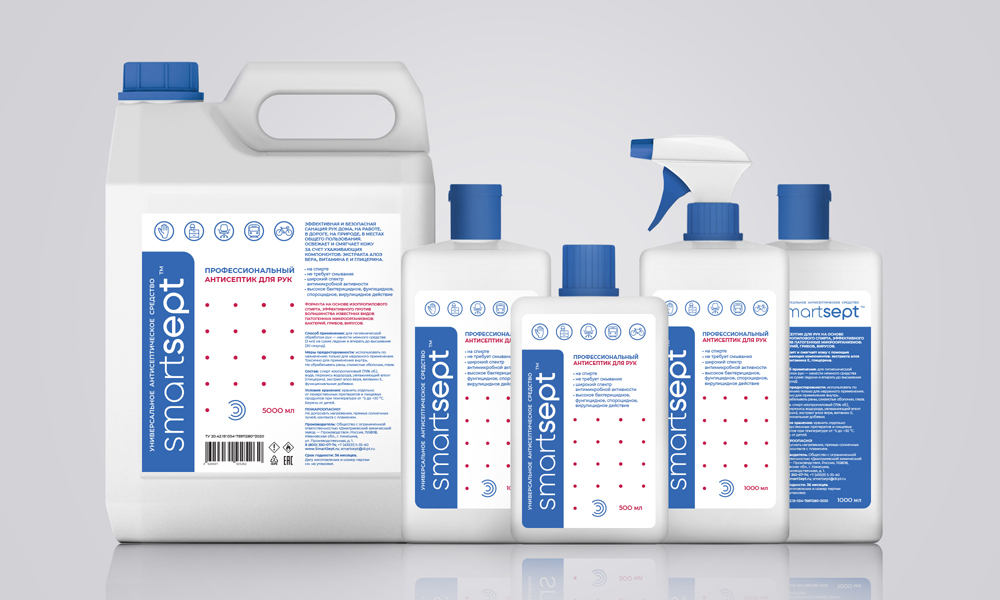 По заказу Дмитриевского химического завода в студии "Артоника" создали и вывели на рынок полноценный бренд принципиально нового для него продукта — универсального антисептического средства. Разработанное имя — Smartsept — отражает ключевые характеристики продукта: его эффективность, технологичность и современность.