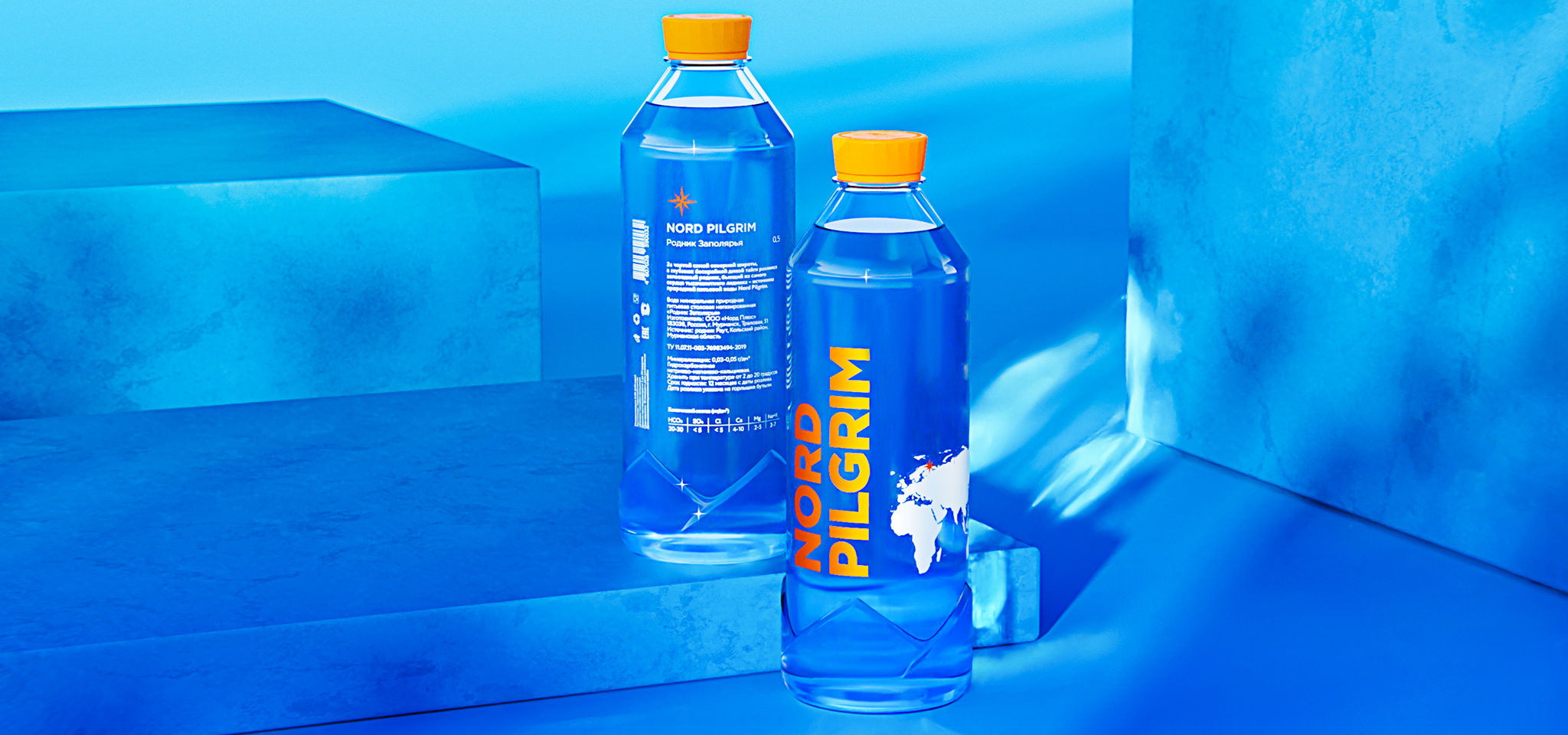 Nord Pilgrim — родниковая вода, добываемая из недр за полярным кругом в Мурманской области. Специалисты агентства Love Marketing разработали для бренда дизайн бутылки и этикетки.