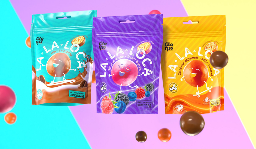 La-la-loca! — новый бренд, который выпускается торговой маркой Gloriss (Biennale Group). По заказу Biennale Group в агентстве "Хром" разработали бренд рисовых шариков в шоколаде, которые идеально подходят для лёгкого перекуса, детского завтрака или в дополнение к офисной чашке кофе.