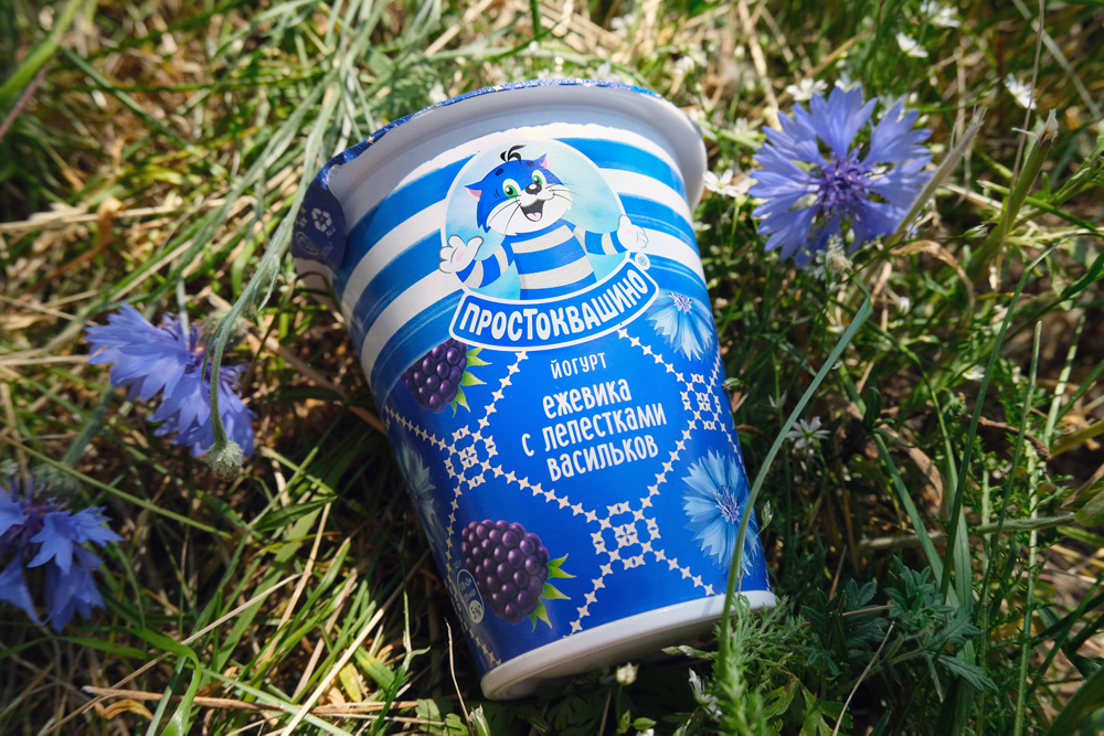 Агентство AVC разработало дизайн упаковки для лимитированной серии йогуртов "Простоквашино" (Беларусь). Это йогурт со вкусом ежевики и василька.