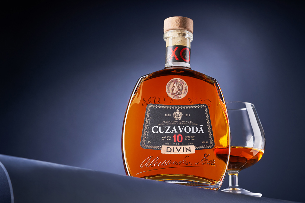 Для одной из этих линеек студии 43'oz была поручена разработка не только дизайна этикетки, но и создание формы самой бутылки. Взяв за основу классическую форму коньяков, в стилистике которой и созданы продукты данной серии, дизайнеры придали ей персонализированные акценты и дополнили визуальную составляющую этикеткой, которая привносит исторический аспект в общую композицию дивинов Cuza Voda.