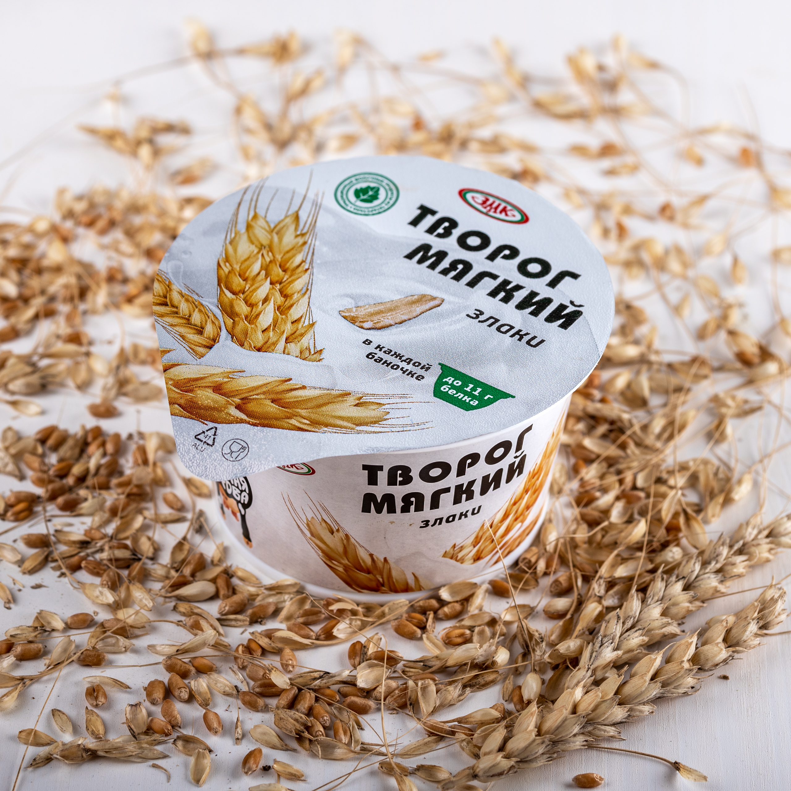 Мягкий творог «злаки» состоит из нормализованного молока, закваски, наполнителя, в составе которого есть пшеничные и ячменные хлопья, овсяные отруби, ростки пшеницы, смесь мюсли из пшеницы, овса, декстрозы и ванилина.