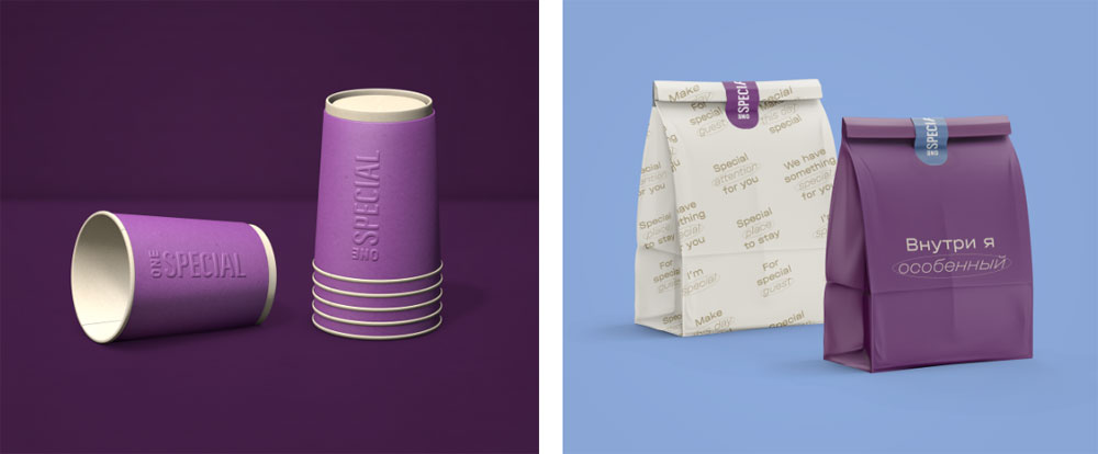 В основу идеи легла концепция Special coffee — special day, вдохновленная названием бренда. Овал, который являлся частью предыдущей версии айдентики, решено было сохранить и использовать как символическое изображение тарелки, а также как прием визуального выделения слов в копирайте.