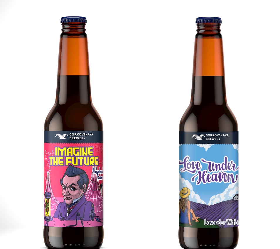 Новинка - Love under Heaven - пшеничный эль с ароматом лаванды, сваренный специально для сети, и открытие 2019 года - Imagine the Future - портер с добавлением фундука - сварены в Нижнем Новгороде и представлены в бутылках 0,44 л.