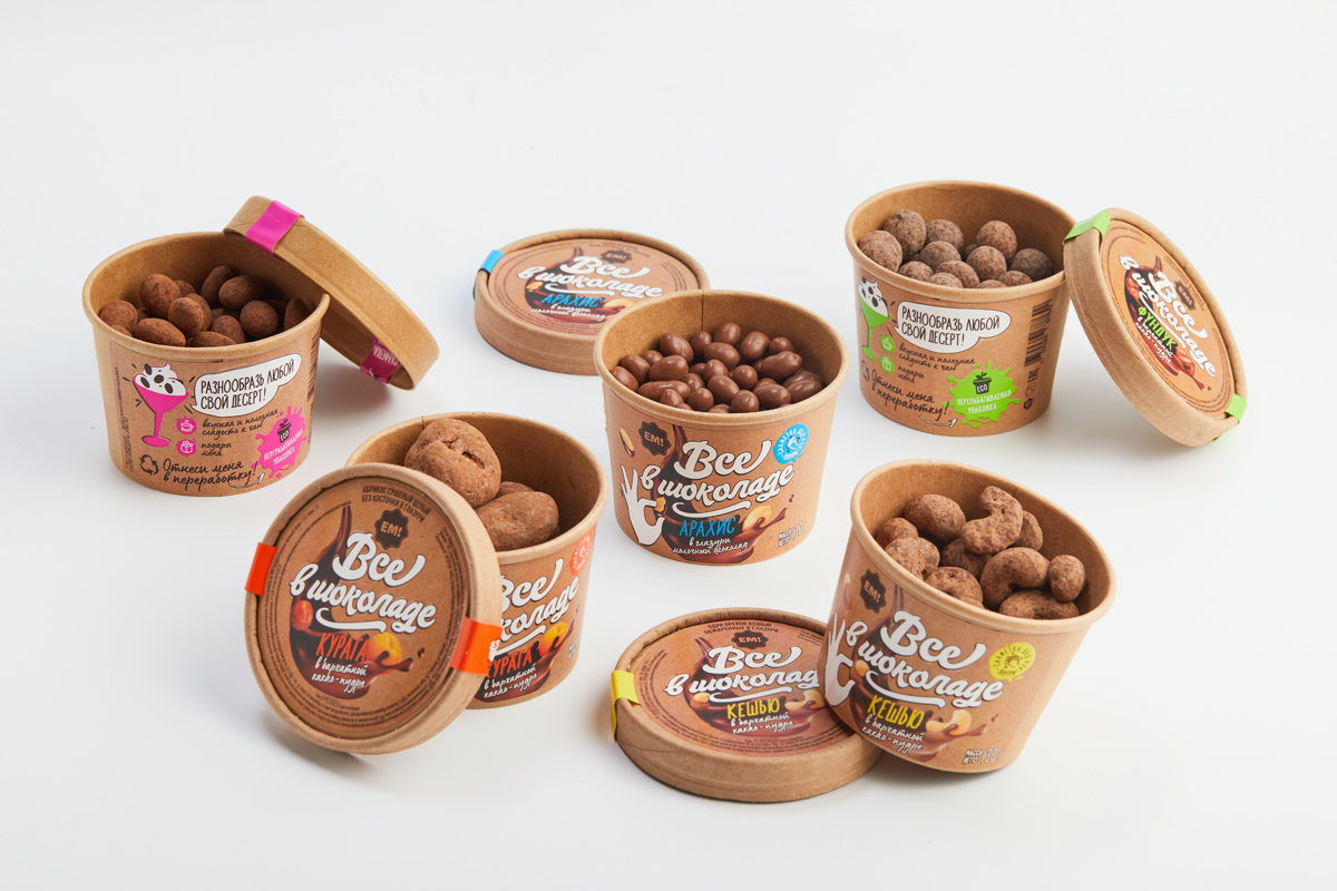 «ЕМ!» - это один из брендов компании, в рамках которого у клиента появилась возможность вывести новый формат продукта - орехи, сухофрукты, ягоды и семечки в шоколадной глазури.