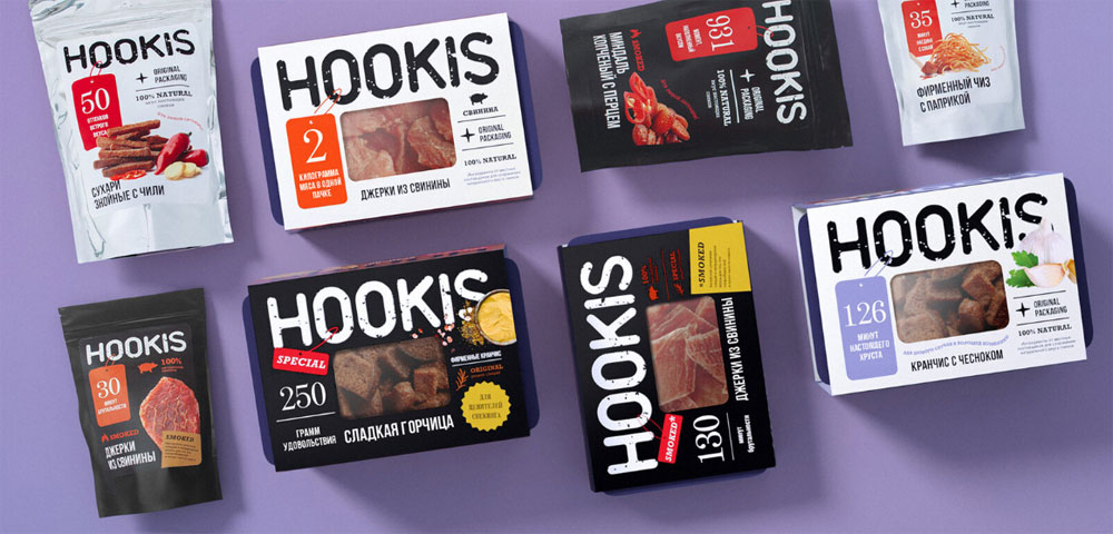 В агентстве Endylab разработали фирменный стиль и дизайн упаковки для снеков HOOKIS.