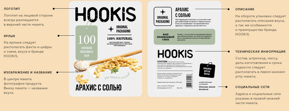 HOOKIS — это сытные и универсальные снеки из натуральных ингредиентов с ярким и насыщенным вкусом, которые хороши как закуска и как полноценный перекус. HOOKIS мотивирует людей на простые удовольствия в течение дня, давая им уверенность в правильном выборе снека.