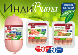 Сосиски и варёная колбаса ИндиВита с овощной клетчаткой - это продукты из полезного мяса индейки и куриного филе, с добавлением моркови, паприки и лука.