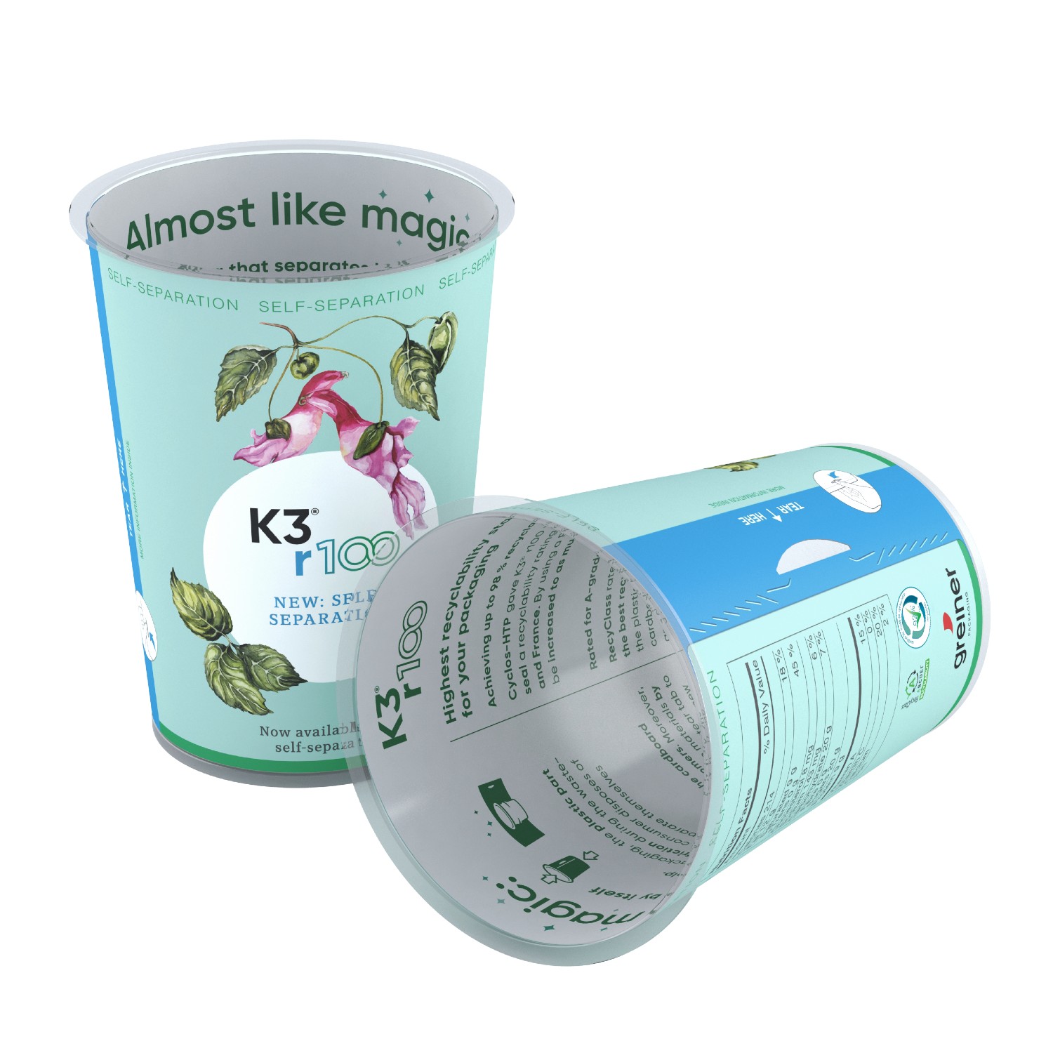 «Разработав K3® r100, мы сделали большой прорыв. При этом, конечно, лучший сценарий, это когда потребитель по-прежнему будет отделять картонную обертку от пластикового стаканчика перед тем, как утилизировать детали должным образом», – подчеркивает Йенс Краузе (Jens Krause), директор по продажам и менеджер категории продукции K3® компании Greiner Packaging. По этой причине в K3® r100 по-прежнему используется инновационное решение, предусматривающее возможность отрывания (tear-off solution), что делает разделение пластика и картона более простым и интуитивно понятным. Это означает, что экологически сознательные потребители могут не рисковать, когда дело доходит до вторичной переработки. Не зря жюри швейцарского упаковочного конкурса Swiss Packaging Awards высоко оценило отрывной язычок за то, что он «удобен для просмотра и использования» и «не требует пояснений». Кроме того, задняя сторона картонной упаковки – идеальное место для предоставления дополнительной информации и взаимодействия с потребителями.