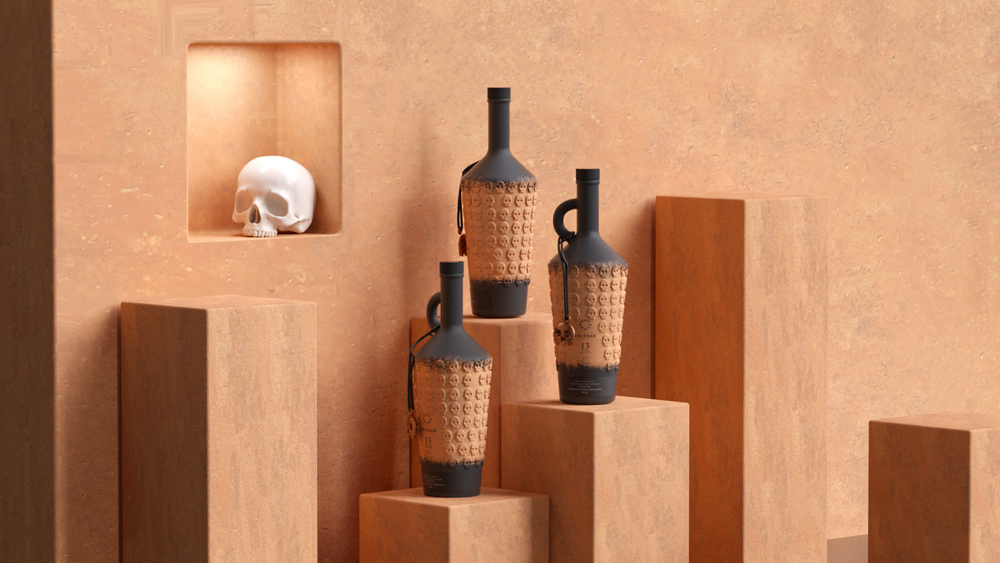 Бутылка, оформленная вручную, напоминает о необходимости чтить традиции, помнить ушедших и праздновать один из самых важных дней в Мексике. Вдохновение для оформления текила пришло от цомпантли – стены черепов.