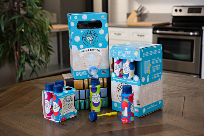 Bubble Tree Refillable Bubble System – это экологически чистая система для пускания пузырей, которая позволяет отказаться от одноразового пластика за счет использования многоразовых алюминиевых бутылок и инновационной гофрированной системы наполнения. Бутылки на 100% пригодны к вторичной переработке, не скользят, и их удобно держать в руке благодаря эргономичной ручке.