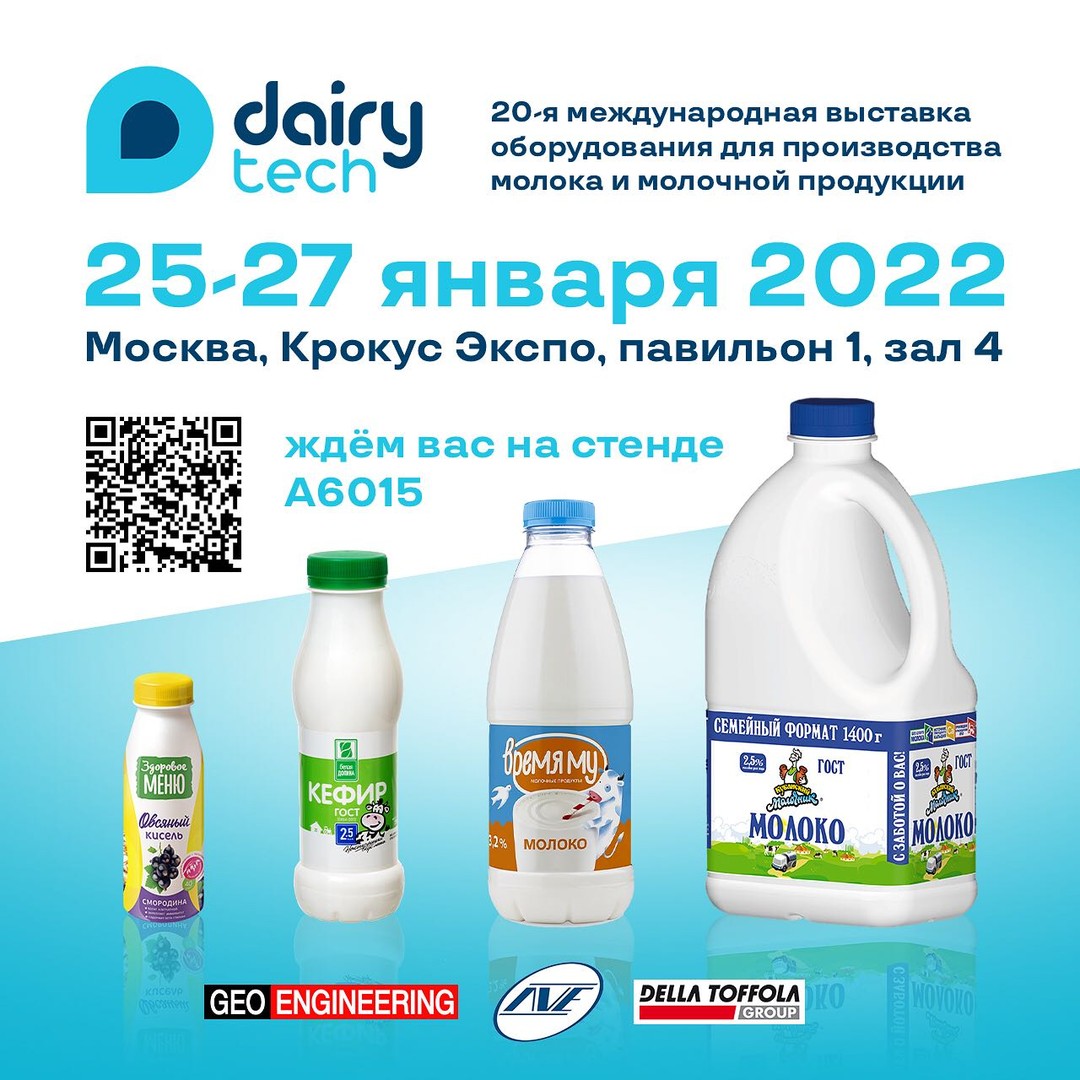 GEO-ENGINEERING вместе со своим итальянским партнером AVE TECHNOLOGIES (Della Toffola Group) примет участие (стенд A6015) в 20-й международной выставке оборудования для производства молока и молочной продукции DairyTech 2022, которая 25-27 января 2022 пройдет в МВЦ «Крокус Экспо», павильон 1, зал 4.
