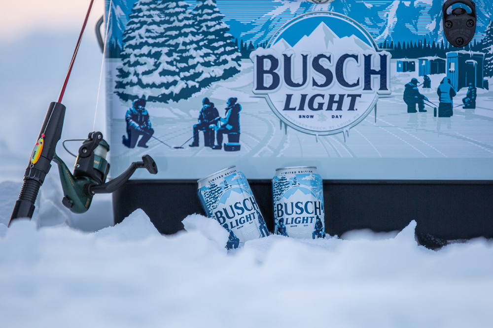 К сезону подлёдной рыбалки бренд Busch Light выпустил ограниченную серию упаковок пива. Вместе с пивом Busch Light представил брендированную передвижную рыбацкую будку.