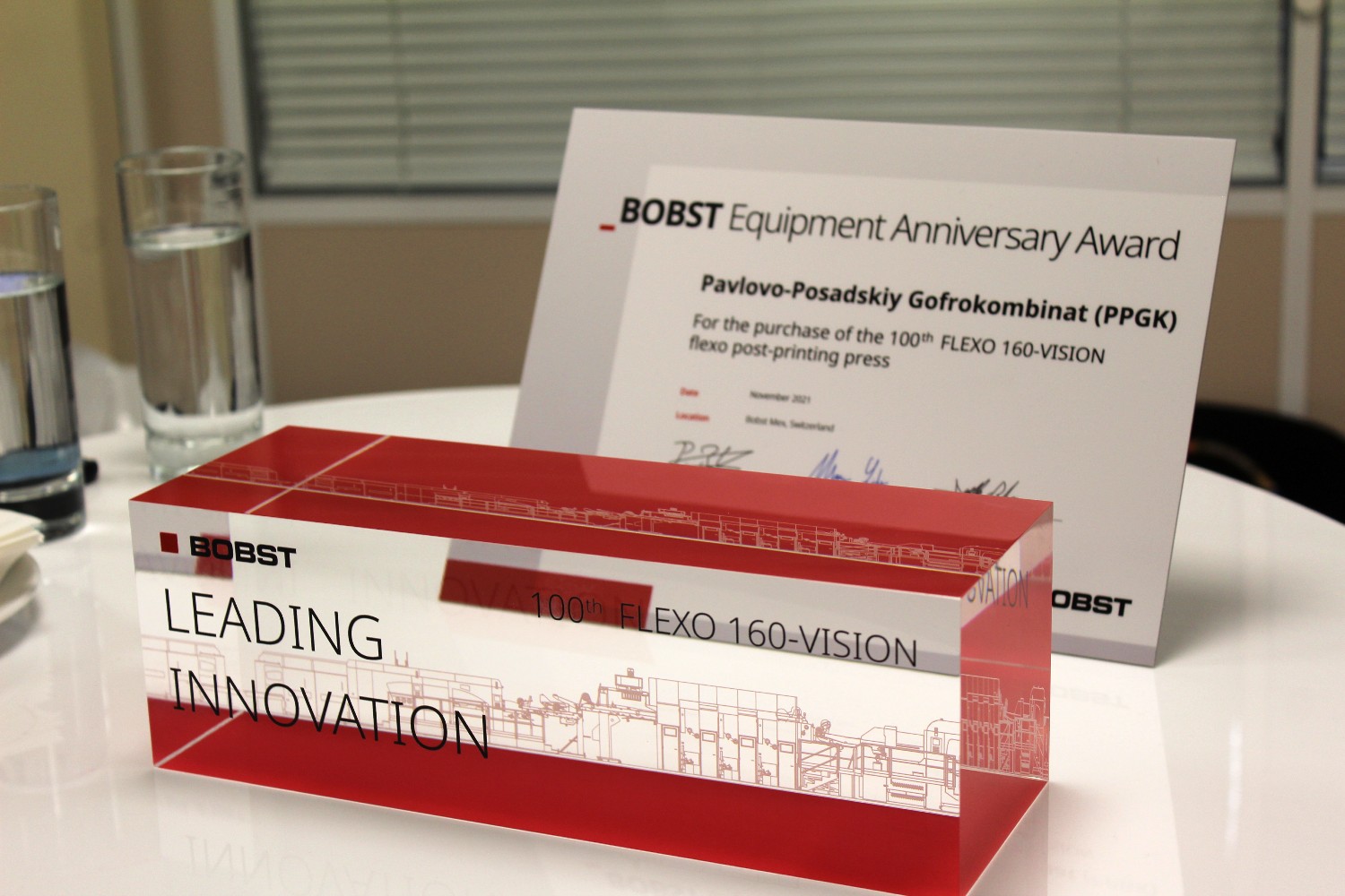31 января 2022 г. на Павлово-Посадском гофрокомбинате состоялась презентация юбилейной сотой машины Flexo Vision производства известной швейцарской фирмы Bobst. Машина Flexo 160-Vision с тремя красочными секциями сочетает в себе прогрессивные технологии и универсальность, позволяя осуществлять высококачественную печать на гофрокартоне.