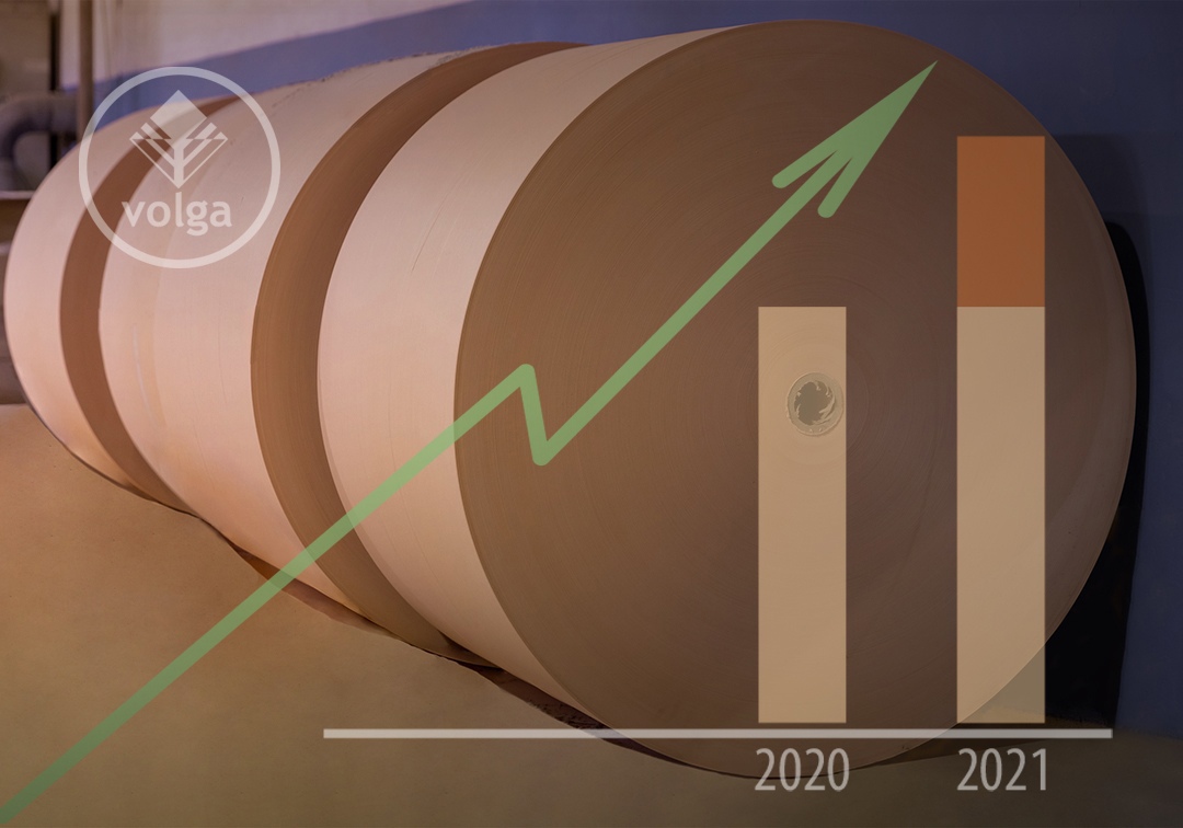 В 2021 году АО «Волга» реализовало на российском рынке на 40% больше газетной бумаги, чем годом ранее. Прирост по продажам АО «Волга» пухлой бумаги в РФ составил 41%.