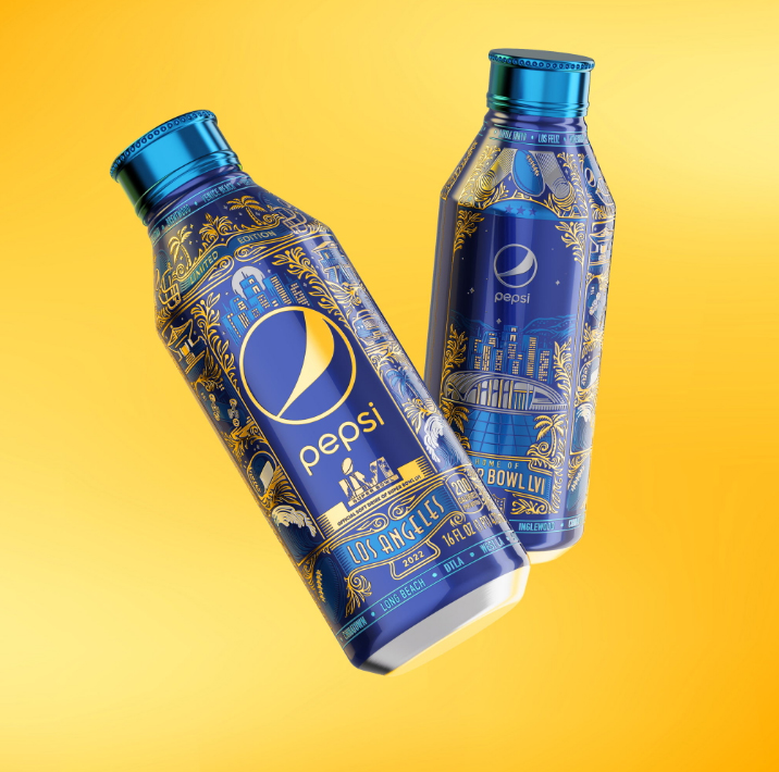 Супербоул LVI прошел в этом году на стадионе «СоФи Стэдиум» в Инглвуде, недалеко от Лос-Анджелеса. Ежегодный чемпионат – это не только мячи и толпы фанатов, это еще и лучшая реклама и упаковка. Специально для этого события PepsiCo выпустил лимитированную коллекцию бутылок, которые продавались только в Южной Калифорнии во время игры.