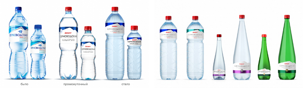 При разработке форм-фактора в агентстве учитывали не только современный дизайн, но и технические возможности оборудования. На бутылке питьевой воды было предложено использование конгрева в виде паттерна, символизирующего горы.