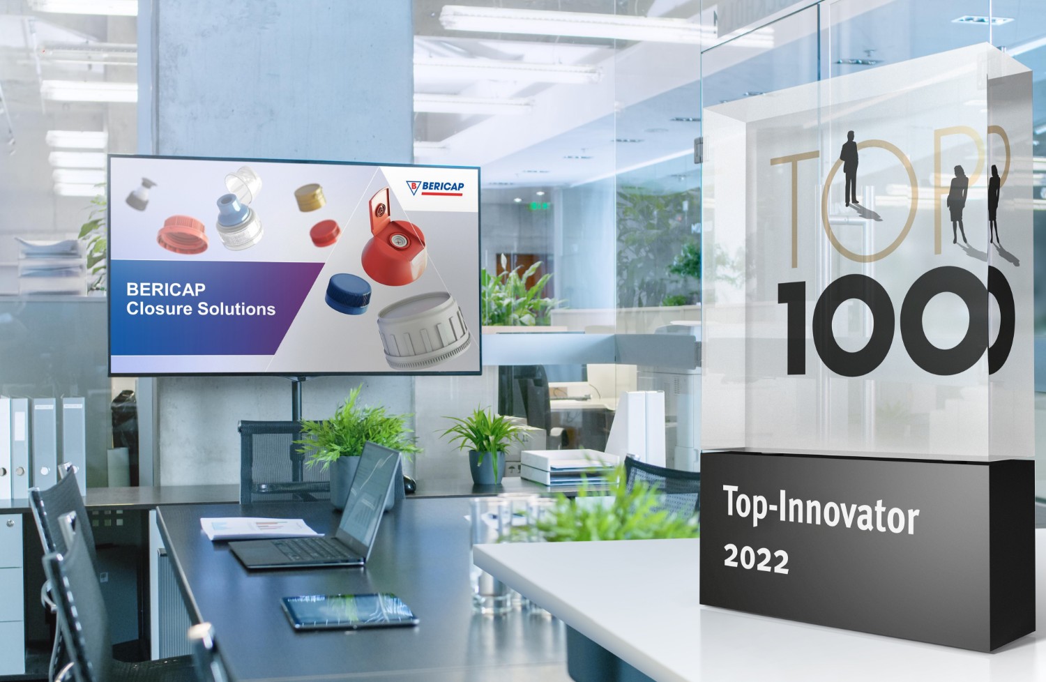 Знак признания TOP 100 подчеркивает новаторскую роль компании в сегменте технологий укупорки. Награда в категории «Химикаты/пластик» была присуждена компании Bericap после того, как она впечатлила жюри экологически устойчивыми новыми продуктами, инновационными решениями в ответ на пандемию COVID-19 и целенаправленным управлением инновациями. Компания также является единственным производителем упаковки/укупорки для пищевой промышленности, производства напитков и непродовольственной индустрии, вошедшим в ТОП-100 в 2022 г. ТОП-100 является самым важным конкурсом в области управления инновациями в Германии. Наставник конкурса, научный журналист Ранга Йогешвар (Ranga Yogeshwar), лично воздаст должное Bericap на церемонии награждения 24 июня 2022 г.