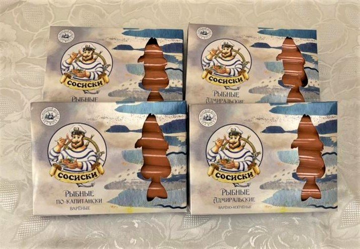 Сосиски представлены в двух вариантах: «По-капитански» - вареные и «Адмиральские» - варено-копченые.