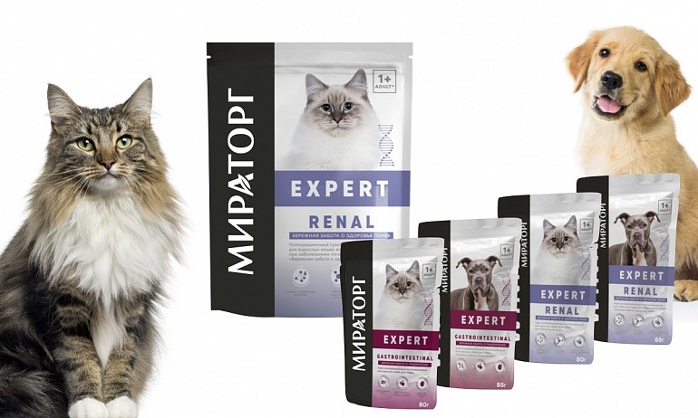 АПХ «Мираторг» запускает линейку специализированных ветеринарных кормов для кошек и собак EXPERT, она создана на базе современных научных исследований в нутрициологии. Корма помогают скорректировать проблемы со здоровьем и избавиться от неприятных симптомов — 100% российский продукт.