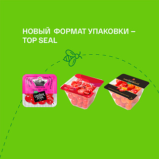 Теперь томаты черри продаются в магазинах в трех форматах упаковок: flow-pack, стакан и top seal. Top seal – полностью прозрачная упаковка, в ней виден каждый плод. Удобно мыть и хранить томаты прямо в упаковке, а после – сдать ее на переработку. Черри трех брендов Flamenco, «Сладкая ягода» и «Медовые» уже фасуются в новую упаковку top seal.