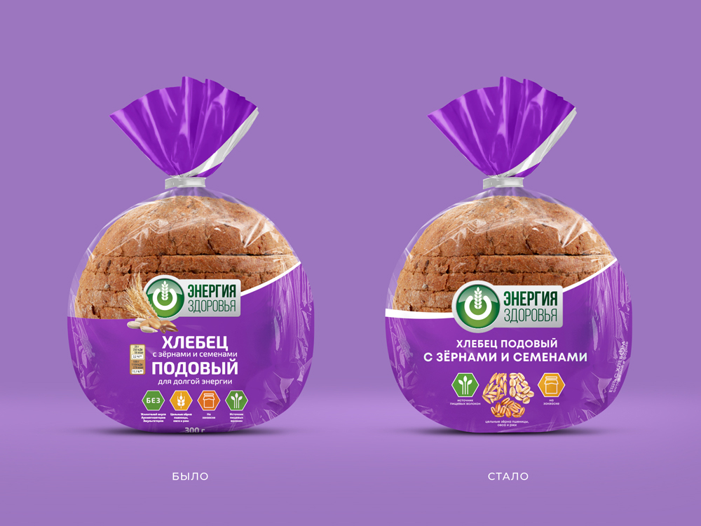 По заказу "Хлебного Дома" агентство Vozduh обновило дизайн упаковки для хлеба "Энергия здоровья".
