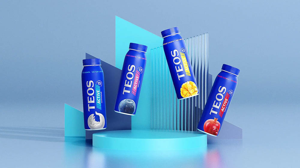 Команда агентства PG провела редизайн упаковки линейки питьевого йогурта TEOS. Нужно было отойти от "греческих" атрибутов в сторону современного бренда, релевантного молодой ЦА.
