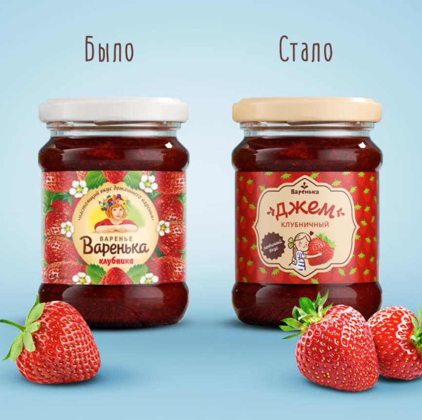 Агенство Clever Branding провело ребрендинг для джема "Варенька". На основе найденных драйверов потребления было разработано несколько вариантов дизайна, из которых был выбран вариант с переработанной иллюстрацией персонажа и типичной центральной композицией на фигурной плашке.