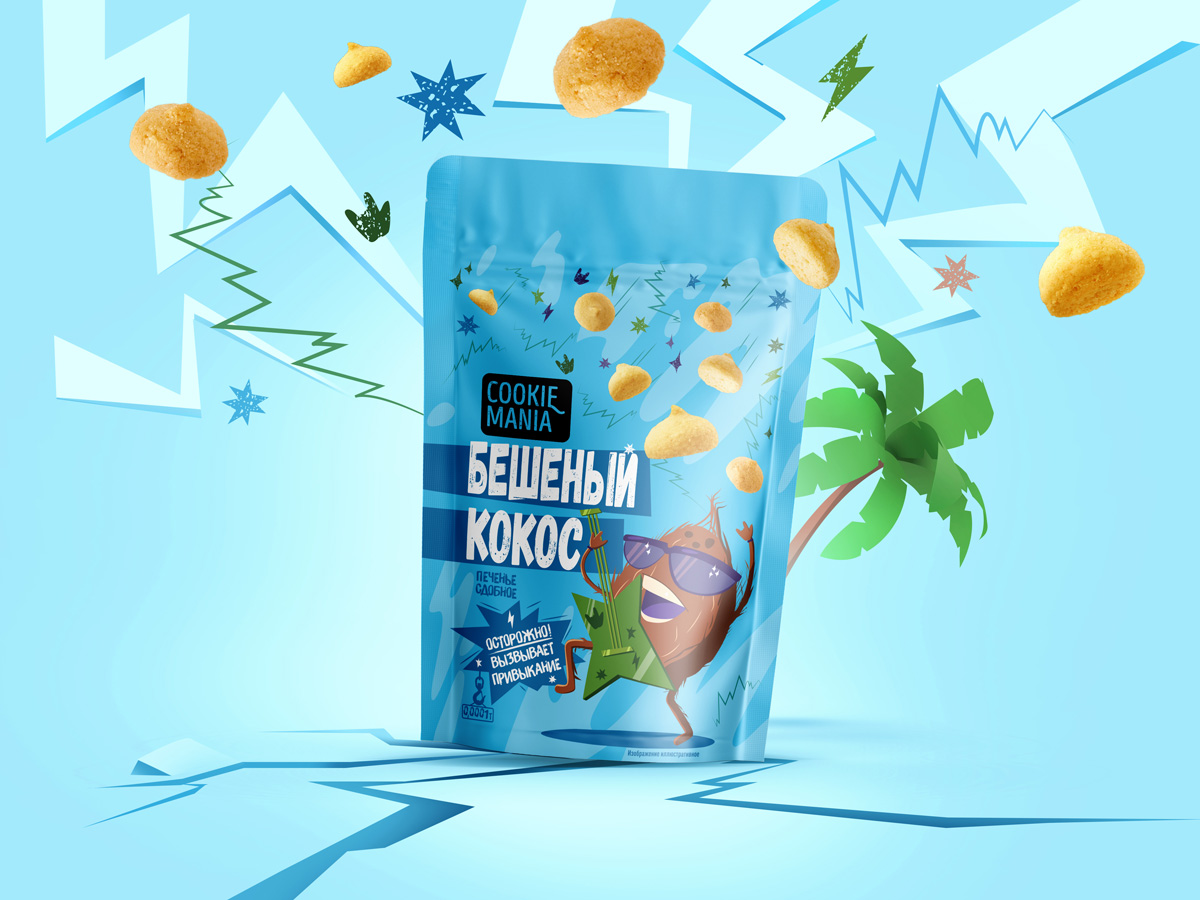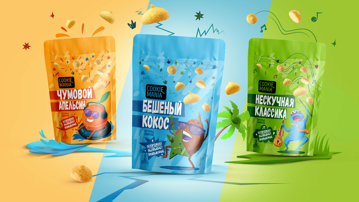 Для решения этой задачи стратегический отдел DS1 branding разработал метафору бренда: печенье «COOKIE MANIA» - это творческий полет, это музыка внутри! Визуальная айдентика отражает это настроение: яркая, энергичная и молодежная, она вызывает желание попробовать продукт.