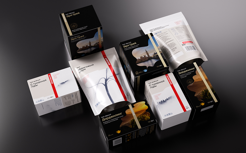 Дизайн-решением для мировой классики стал образ заварочного чайника, из которого выходит пар-облачко. Эта метафора передает аромат свежезаваренного чая через атмосферное фото страны происхождения. Форма облака с изображением при этом может меняться, подстраиваясь под форматы упаковки.