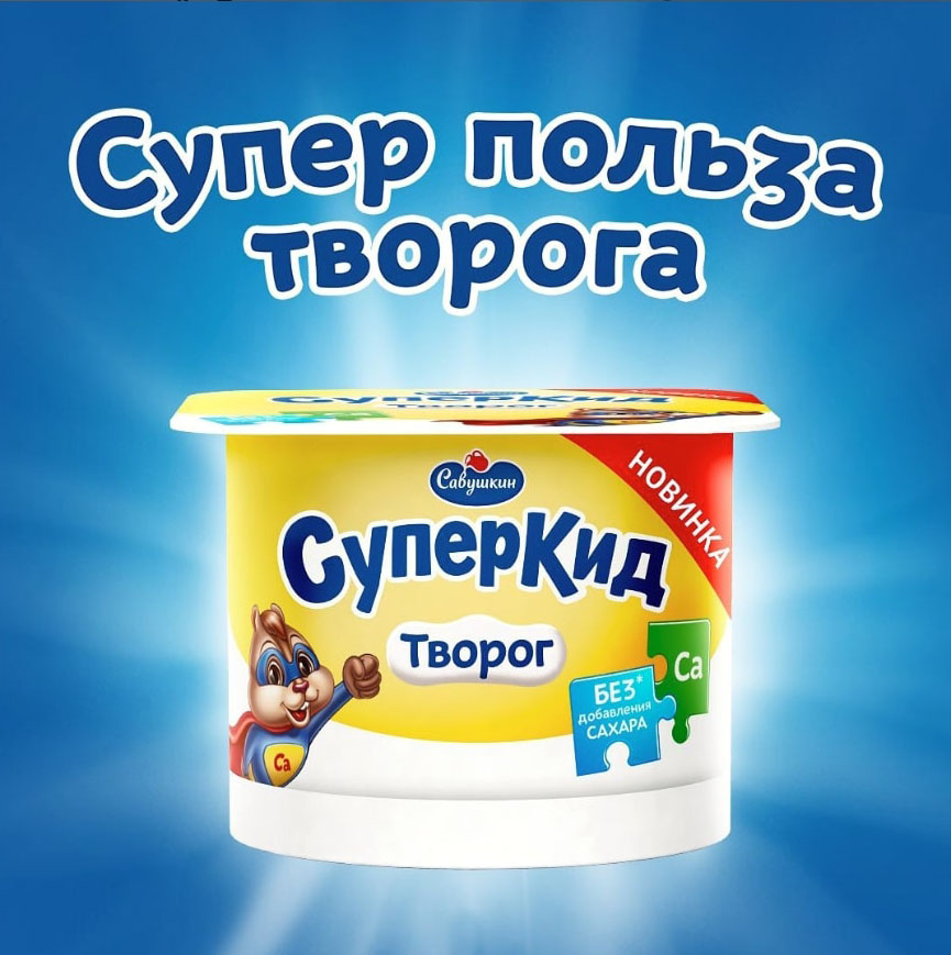 Компания "Савушкин продукт" расширила линейку детского бренда "СуперКид". Теперь в ассортимент также входит мягкий творог.
