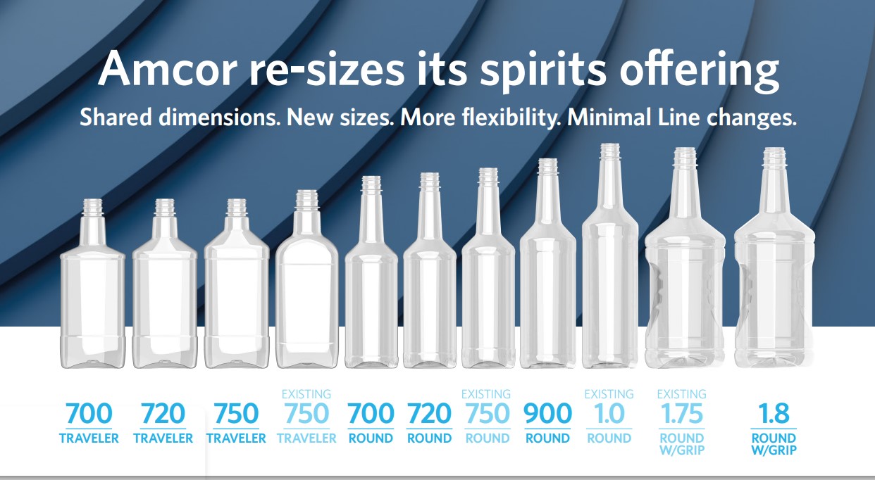 Компания Amcor Rigid Packaging (ARP) представила новые образцы бутылок для спиртных напитков, изготовленных из перерабатываемого ПЭТ, которые соответствуют новым размерам, определённым Бюро по налогам и торговли США (TTB).