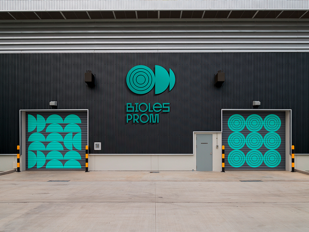 Лаконичное графическое решение построено на использовании простых геометрических форм, коррелирующих с видом деятельности компании. Модный оттенок зеленого подчеркивает технологичность нового производства.