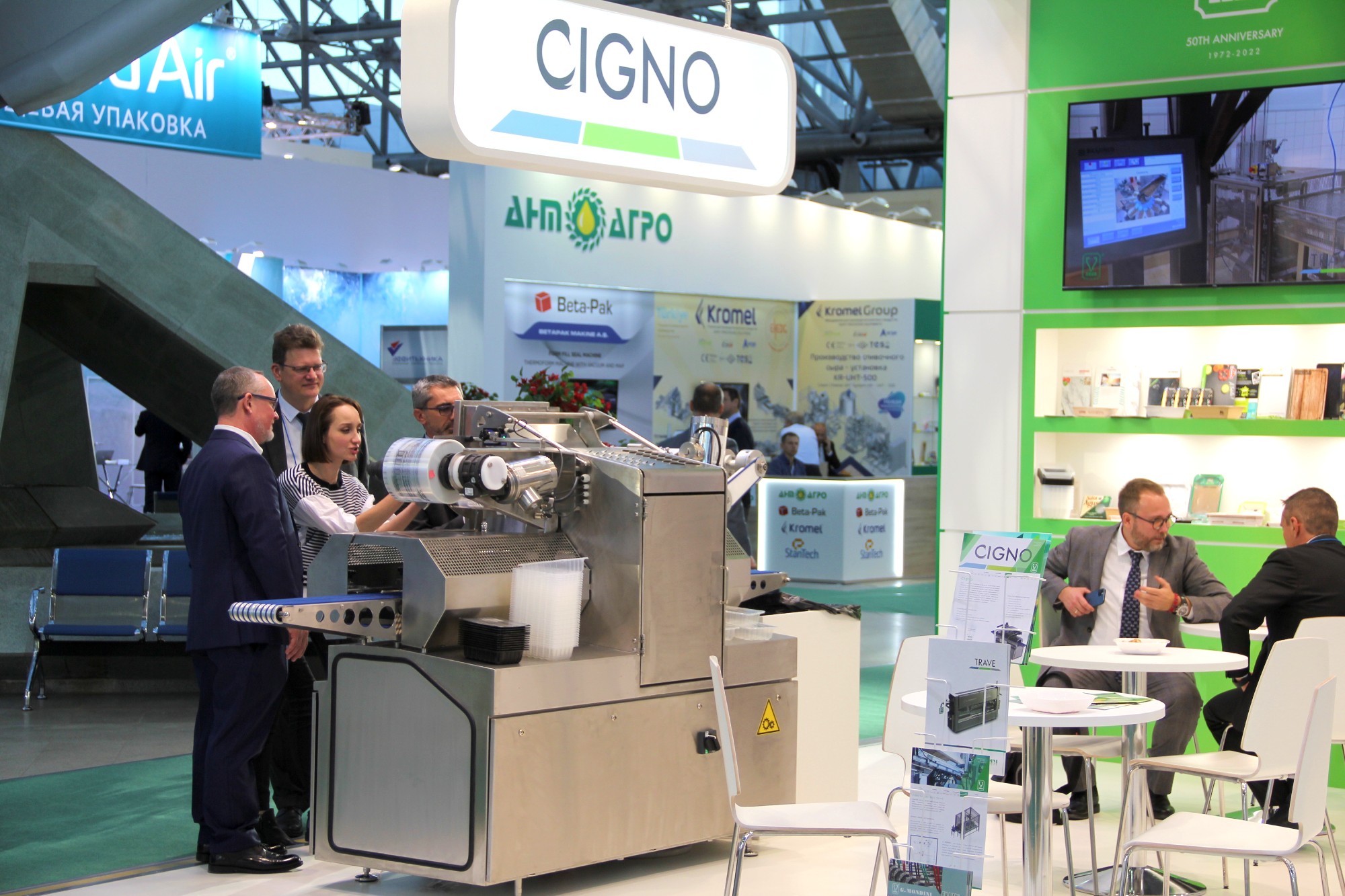 ООО «Джи. Мондини» представила трейсилер Cigno на выставке «Агропродмаш-2022», которая проходит в ЦВК «Экспоцентр» на Красной Пресне с 10 по 14 октября 2022 г. По информации компании, Cigno – новейшая разработка в семействе компактного автоматического оборудования для запайки лотков.