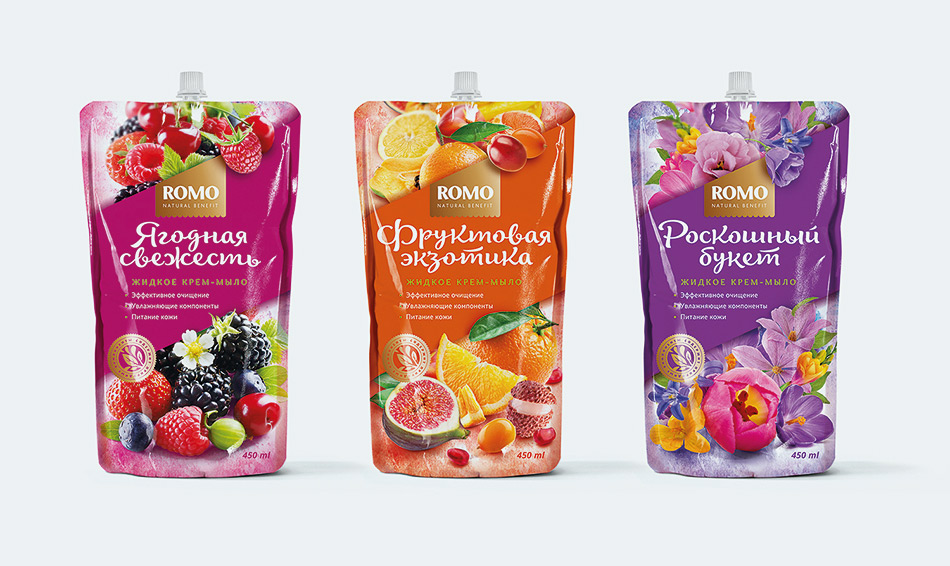 Студия Supremum Design разработала дизайн упаковки жидкого мыла и гелей для душа ROMO.